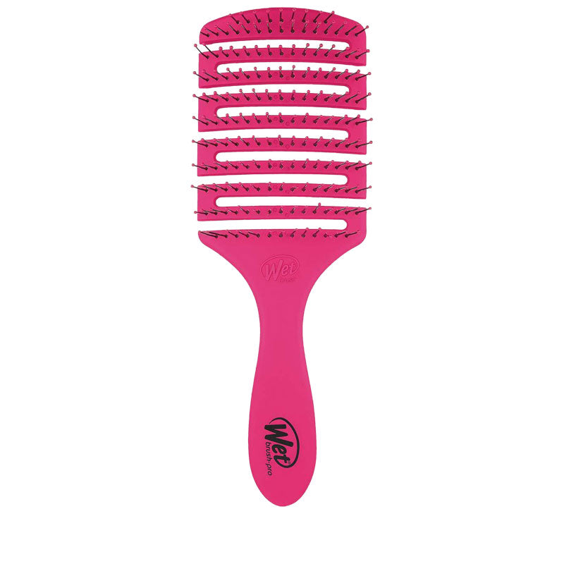 This flexible brush allows for enhanced detangling. The open vented design allows moisture to be removed from the hair faster, speeding up drying time. The soft bristles glide effortlessly through hair while gently stimulating the scalp. The exclusive bristles help resist heat, making it perfect for use with your hair dryer.