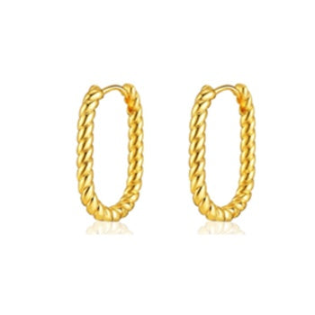 Offers a modern twist with its oval hoop design featuring a subtle texture. A classic look reimagined with a refined gold-tone finish.