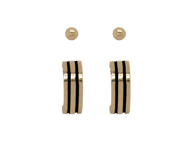 This elegant set pairs polished ball studs with classic hoop earrings, all finished in warm gold for timeless appeal. The pieces can be worn separately...