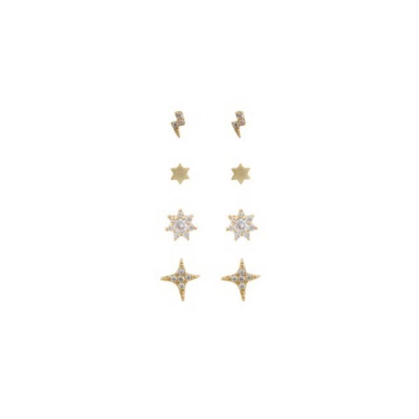 This stylish earring stack set is perfect for layering and creating a unique look. Finished with elegant gold plating, it adds a touch of sophistication and versatility to any jewelry collection.