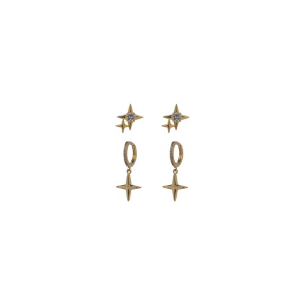 Adnohr Sensation Huggie Star Set GP 16032 A stylish gold-plated huggie earring set featuring a charming star design. Crafted for comfort and a secure fit,...