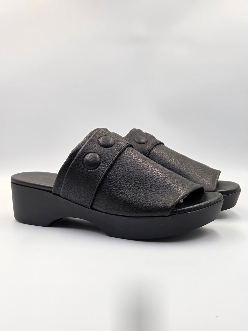 A black slide with a sleek, modern silhouette for easy everyday wear. Its minimal design and soft sole offer both comfort and style.Features Smooth finish...