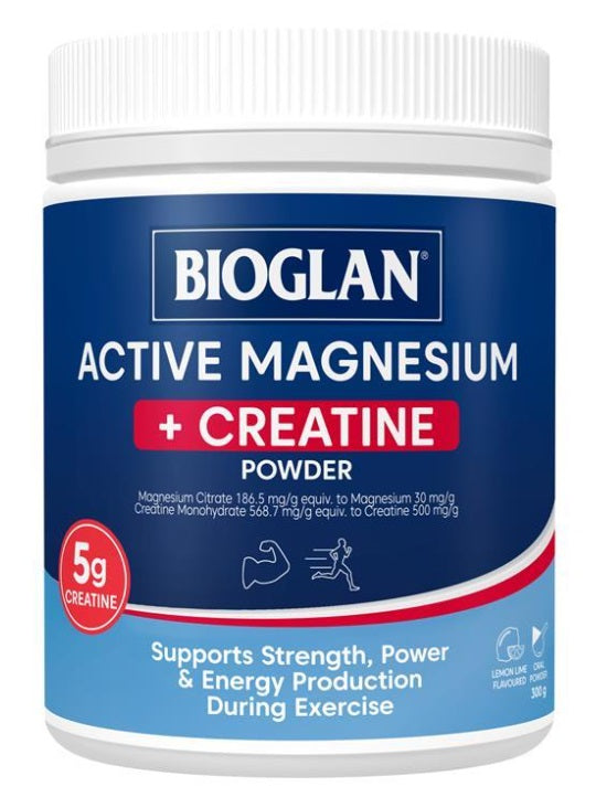 Bioglan Active Magnesium + Creatine Powder combines highly absorbable Magnesium citrate with 5g of Creatine to support muscle strength, energy production and aid post exercise...