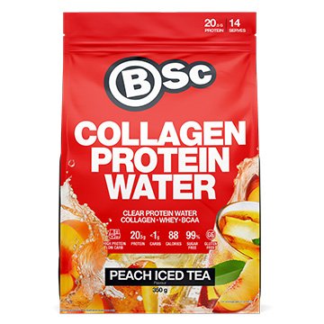 A refreshing peach iced tea-flavored protein water combining collagen, whey protein, BCAAs, and vitamin C to support muscle recovery and hydration. Features: High in protein...