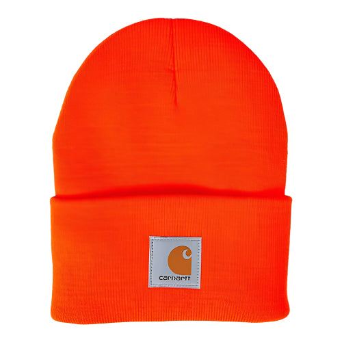 Stay warm and visible with the iconic Carhartt beanie in bright orange. Its stretchable rib-knit fabric delivers all-day comfort and a snug fit. A favorite...