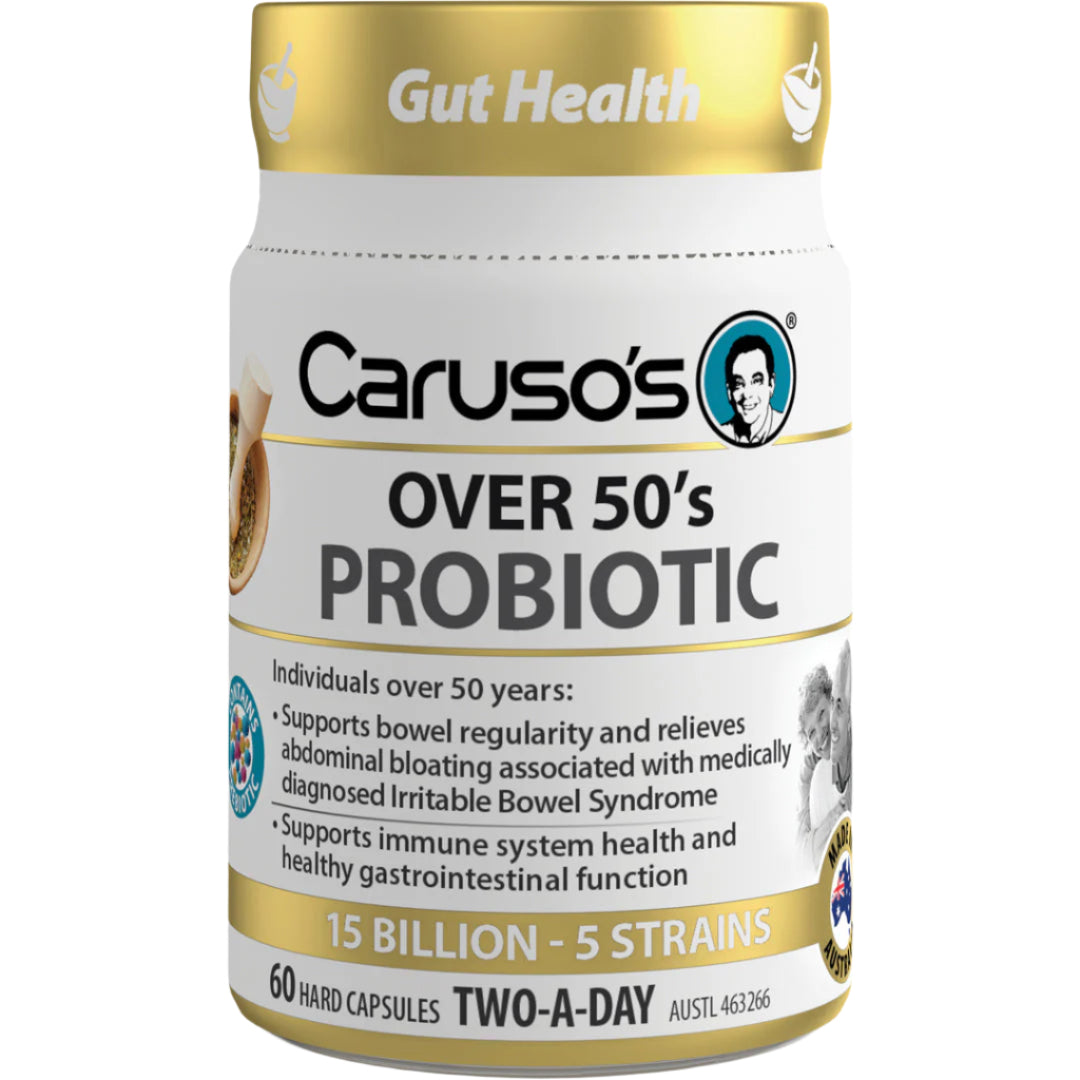 Discover the benefits of Caruso’s Over 50’s Probiotic – a premium multi-strain formula designed specifically for individuals over 50.