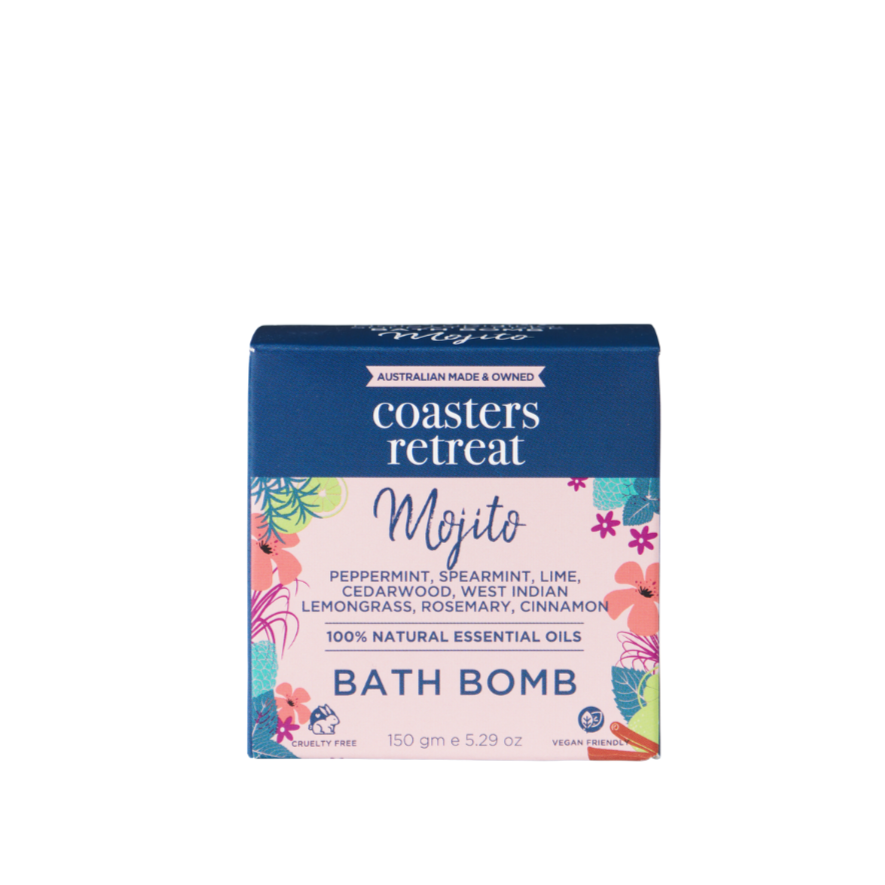Indulge and unwind Coasters Retreat Mojtio-inspired, sulfate-free, moisturising bath bomb. Formulated with skin soothing oils and fragranced with 100% natural essential oils including peppermint, spearmint,...