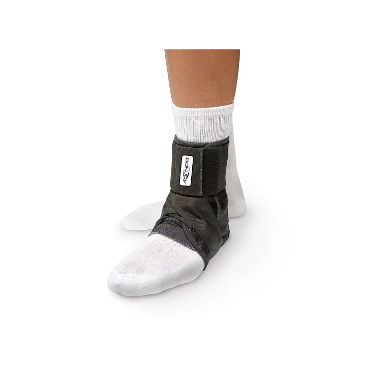 The Stabilizing Pro Ankle Brace is designed to meet the needs of demanding athletes. It features 800D ballistic nylon and reinforced eyelet area for outstanding performance and durability. A full circumferential elastic strap secures all strapping and provides tibia/fibula compression and stability. Lace-up design and trimmable figure-8 strapping locks the calcaneus into place and controls inversion/eversion. Removable, articulated medial/lateral stays enhance proprioception and stability. Fits easily into an athletic or street shoe. Universal to fit right and left.