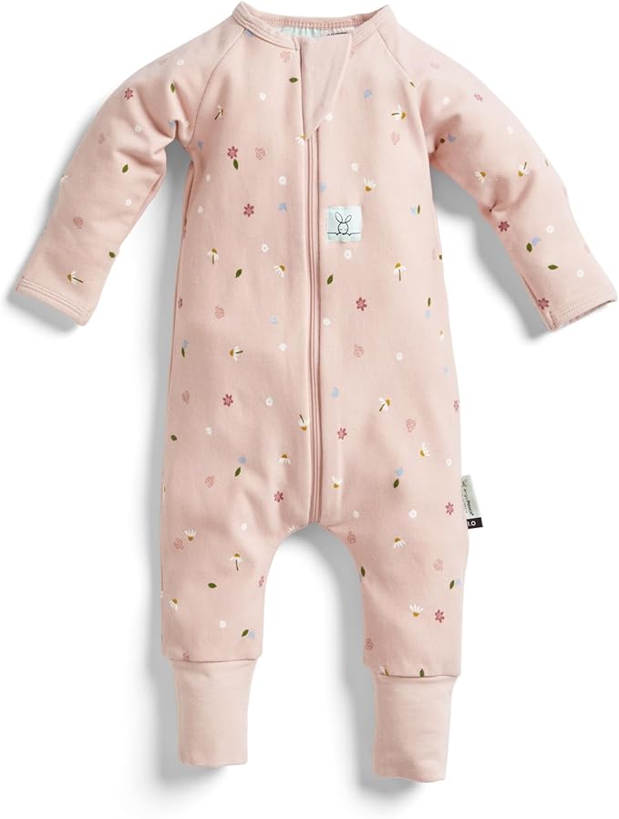 ErgoPouch Layers Long Sleeve Zip Growsuit and Hat Pale Pink Tree 0.2 TOG 0 to 3 Months