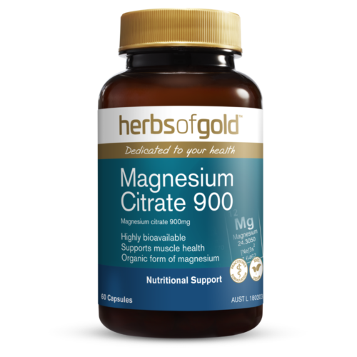 Herbs of Gold Magnesium Citrate 900 provides a well-absorbed organic form of magnesium to support muscle function, nervous system health, and overall well-being.