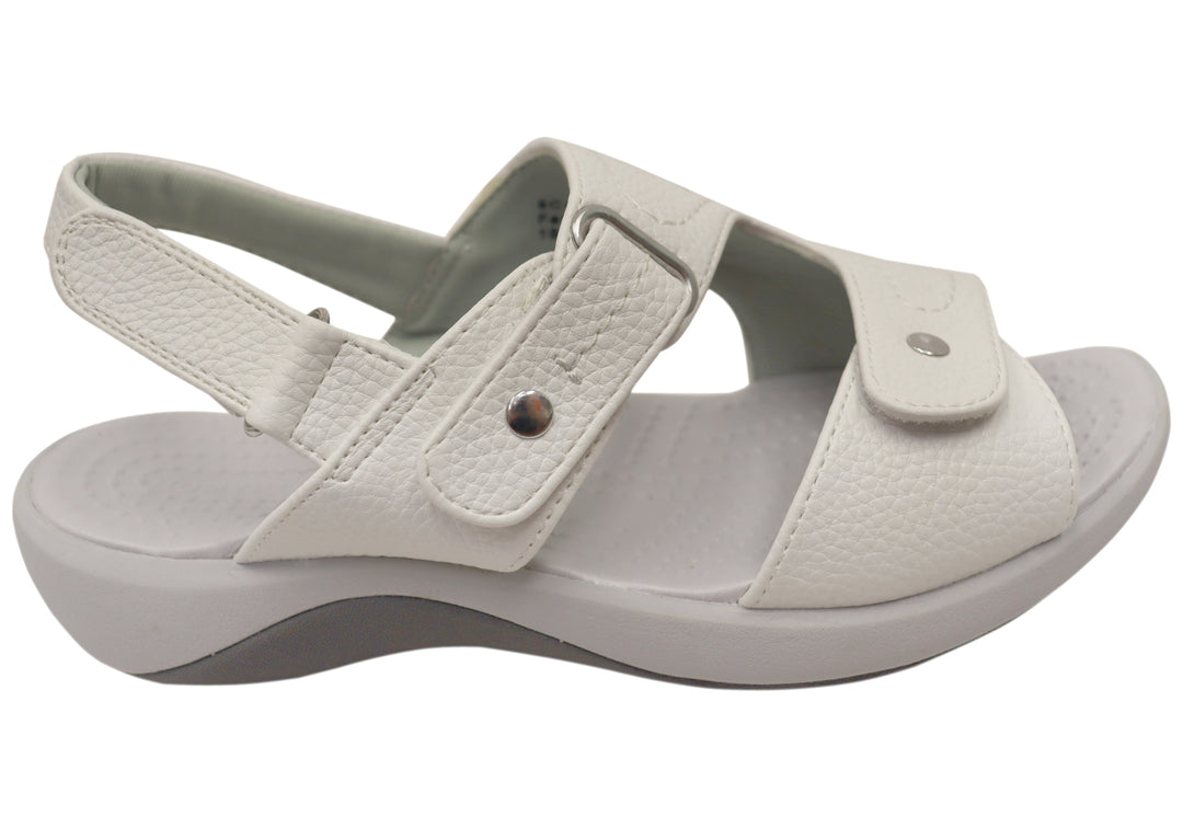 This comfortable women’s shoe offers reliable support and lightweight construction for everyday wear. Breathable materials maintain airflow, while a cushioned sole reduces fatigue during long walks or standing. Its neutral white design pairs easily with various outfits, making it an ideal choice for casual, work, or social occasions.