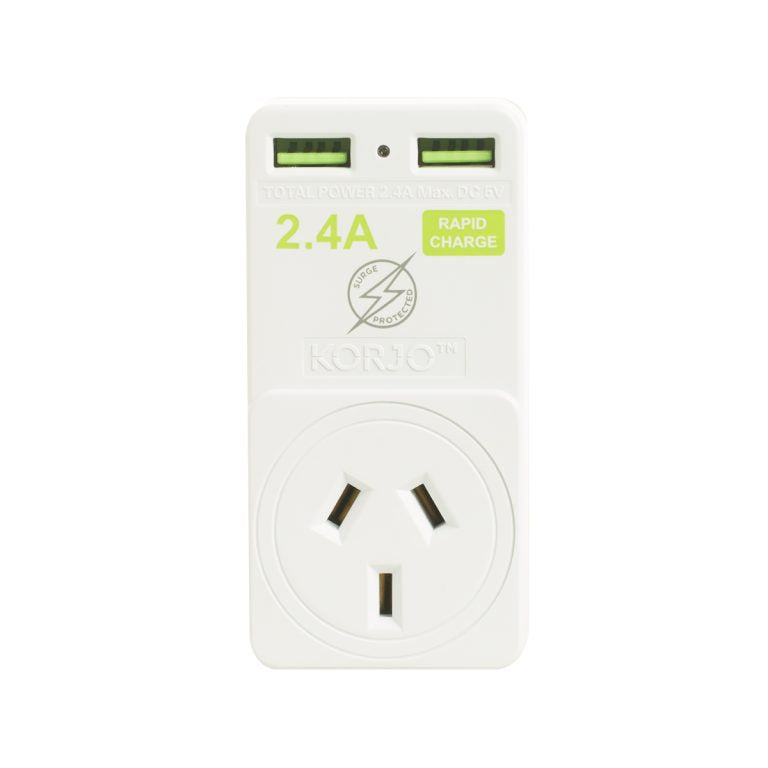 The Korjo USB A+C Adaptor – Europe is for use with Australian / NZ appliances PLUS USB-A and USB-C charged devices in Europe (except Italy,...