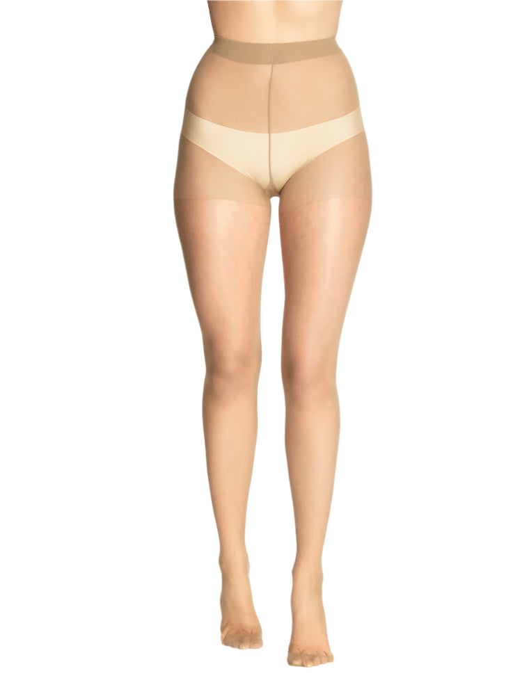 Shimmery 12 denier pantyhose in Visone tailored for taller frames—featuring comfort brief, cotton gusset, and reinforced toe for elegance and durability.  Features 12 denier Light comfort...