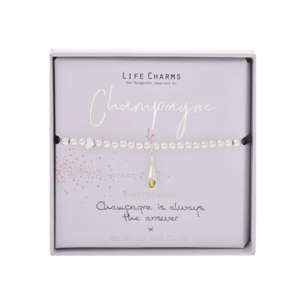 Life Charms Bracelet Champagne This exquisite bracelet by Life Charms features a 5mm beaded stretch design and a dazzling silver charm, making it the perfect...