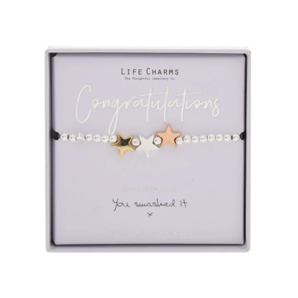 Life Charms Bracelet Congratulations Celebrate a special achievement with the Life Charms Bracelet Congratulations! This elegant bracelet features a 5mm beaded stretch design and a...