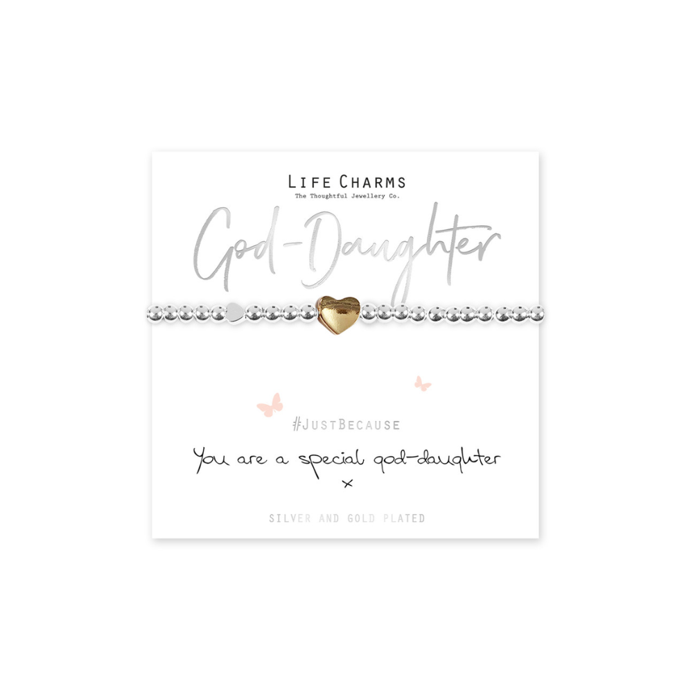 Life Charms Bracelet God Daughter This beautiful bracelet features pure silver-plated charms on a 5mm beaded stretch design. It comes presented in a luxury gift...