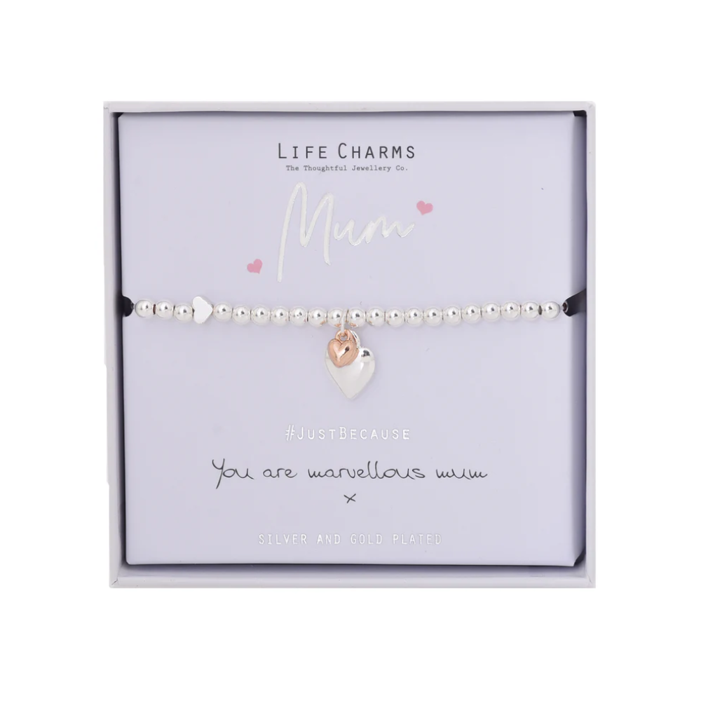 Life Charms Bracelet Mum This stunning silver-plated bracelet features a hanging charm on a 5mm beaded stretch design, making it a perfect gift for Mum....