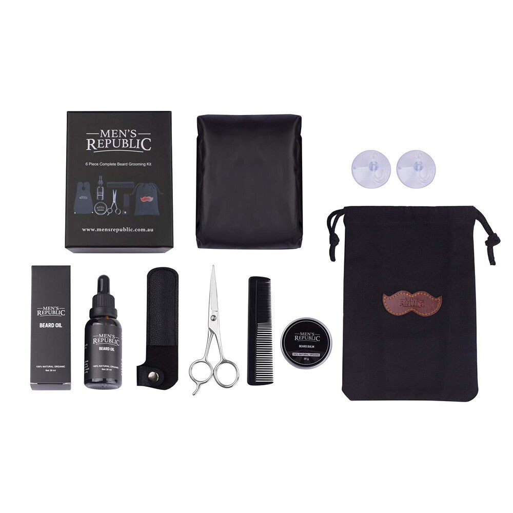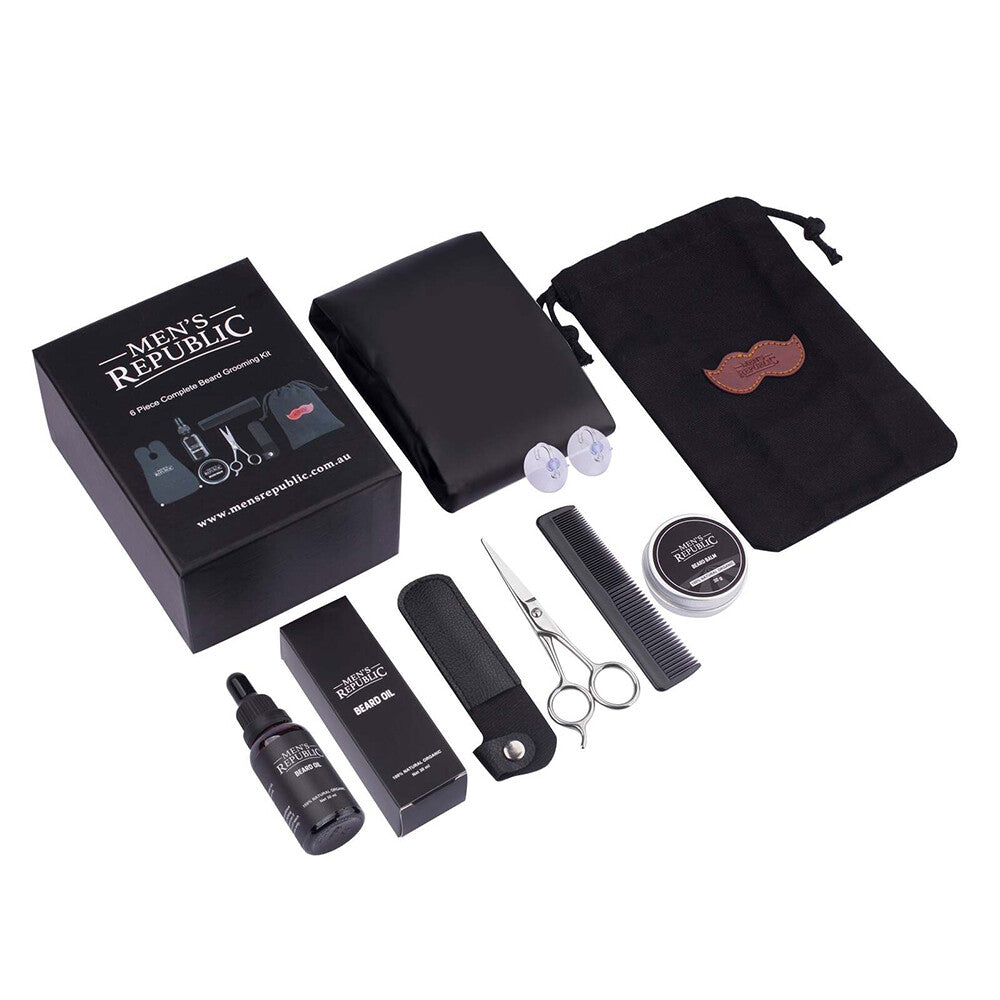 Men's Republic 6 Piece Beard Grooming Kit with Bag and Apron 30ML 30G 60ML