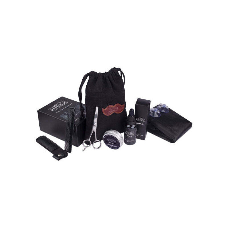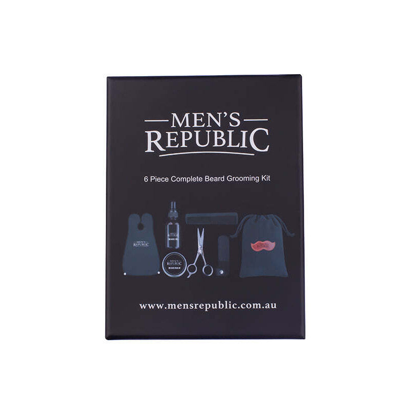 The ultimate grooming solution for the modern man. This comprehensive 6-piece set from MEN'S REPUBLIC provides all the essentials to maintain a perfectly groomed and healthy beard. Presented in a stylish travel bag and including a handy beard apron to catch trimmings, this kit is perfect for use at home or on the go.