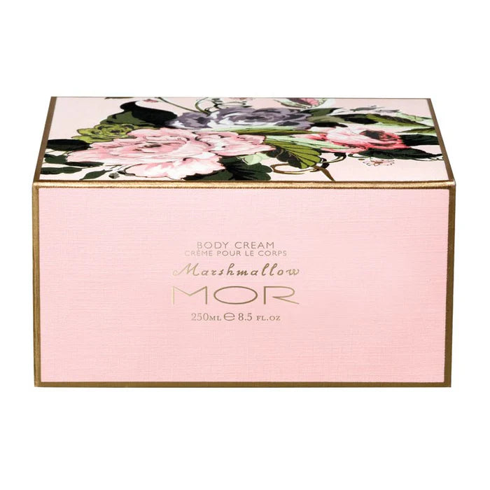 Delicate marshmallow-infused fragrance leaves skin sweetly scented