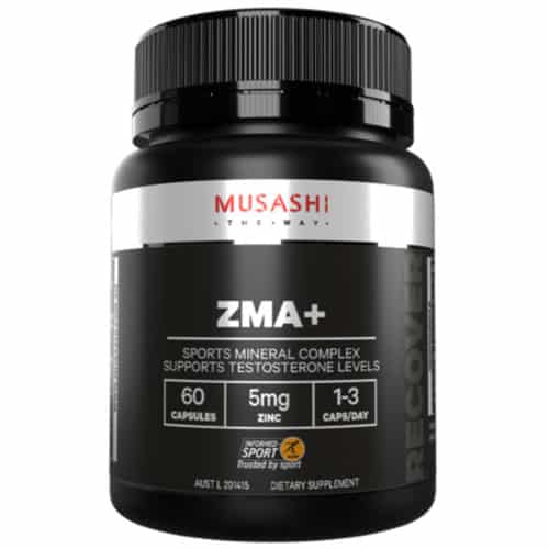 MUSASHI ZMA+ is a source of key minerals Magnesium, Zinc and Manganese. Sports mineral complex Supports testosterone levels 5mg Zinc per capsule 60 Capsules Directions ADULTS:...