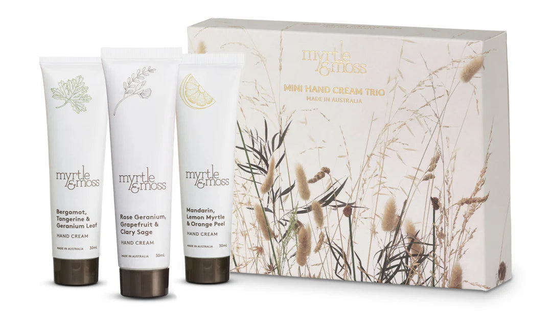 Myrtle & Moss Mini Hand Cream Trio – 30ml x 3 A beautifully curated set featuring three signature essential oil blends, perfect for nourishing and...