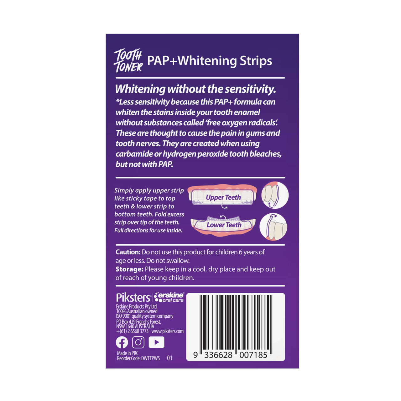 Piksters® Tooth Toner PAP+ Whitening Strips are the peroxide free alternative to Piksters® Tooth Toner Whitening Strips. The effective whitening peroxide free formula whitens teeth...