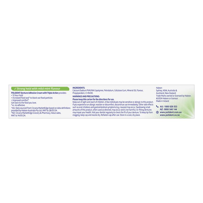 Polident Denture Adhesive Cream in Fresh Mint (60g) provides a secure, long-lasting hold for dentures, ensuring comfort and confidence throughout the day. The creamy formula...