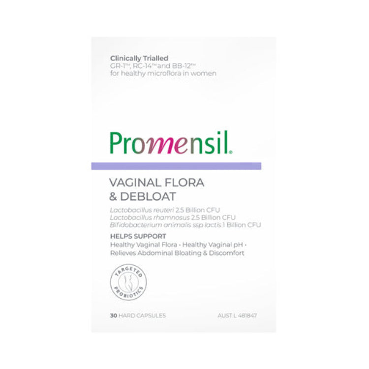 Promensil Vaginal Flora & Debloat is a premium targeted probiotic containing clinically trialled* ingredients GR-1™, RC-14™ and BB-12™.A premium, targeted, multi-strain, probiotic that is formulated...