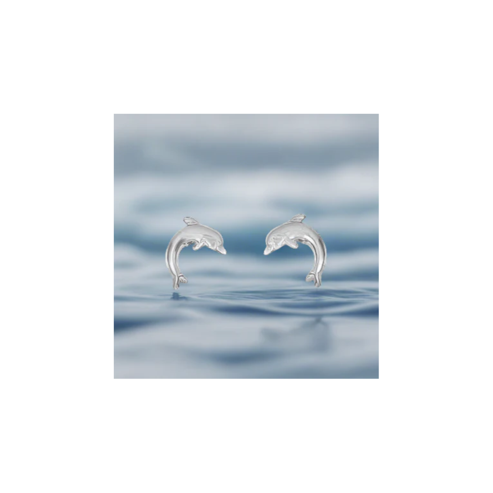 These rhodium-plated dolphin stud earrings offer a charming and elegant touch, symbolizing wisdom, protection, and playfulness.