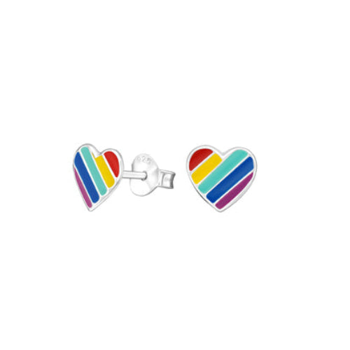 Add a playful pop of colour to your look with these Sterling Silver Striped Heart Stud Earrings. Featuring a vibrant rainbow enamel design, these earrings...