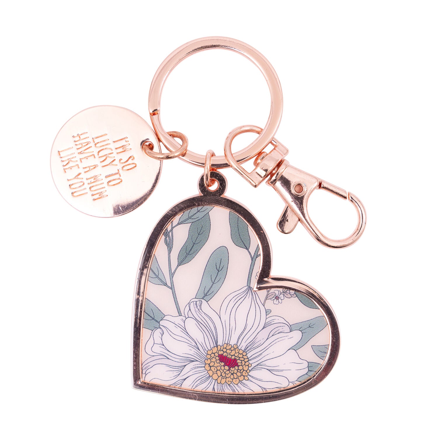 This floral keyring features a heartwarming message: “Lucky To Have A Mum Like You.”
