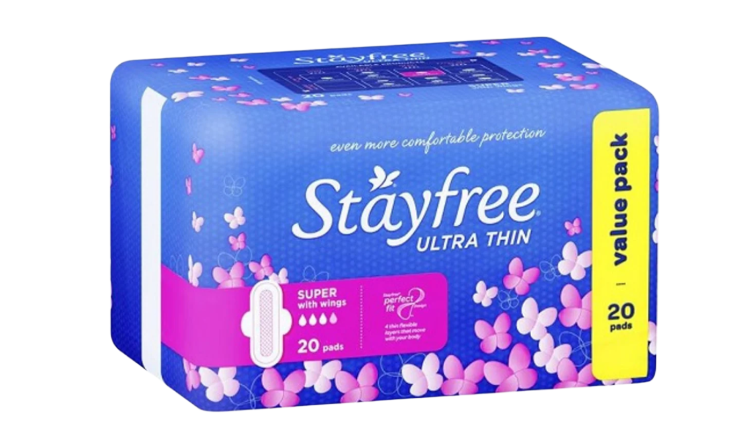 Stayfree Ultra-Thin Super Pads with Wings give you even more comfortable protection. The Stayfree Perfect Fit Design provides 4 thin flexible layers that move with...