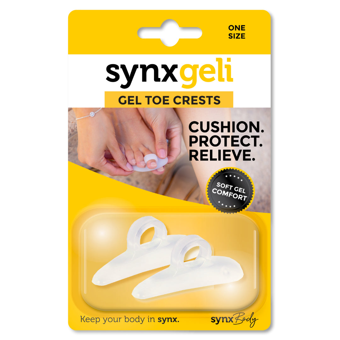The Synxgeli Toe Crests are designed to cushion, protect, and relieve soft tissue, bones, and joints from unwanted stress, providing optimal comfort and pain relief....