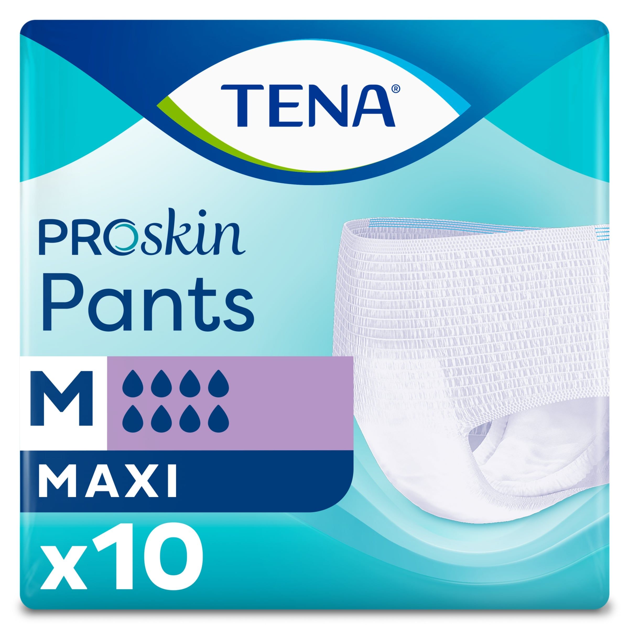 TENA Pants Maxi are white, soft and comfortable to wear disposable incontinence pants, also called pants, for men and women with a pull-up fit that...