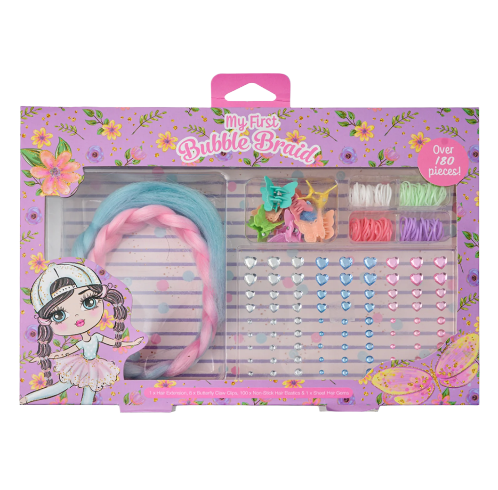 This beginner-friendly set includes fun accessories for bubble braiding fun. Introduce creative hairstyling with the Treehouse Friends My First Bubble Braid Kit.