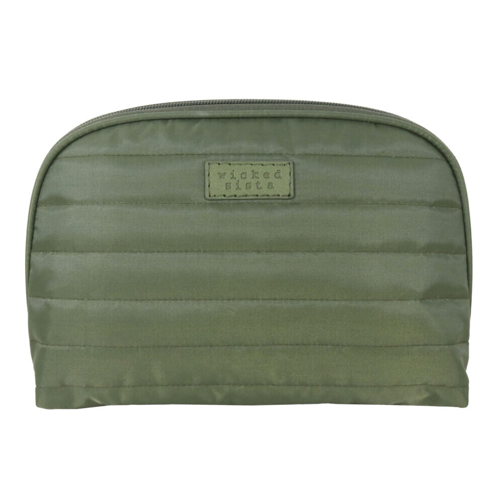 Wicked Sista Cosmetic Bag Quilted Khaki Medium Round Shell