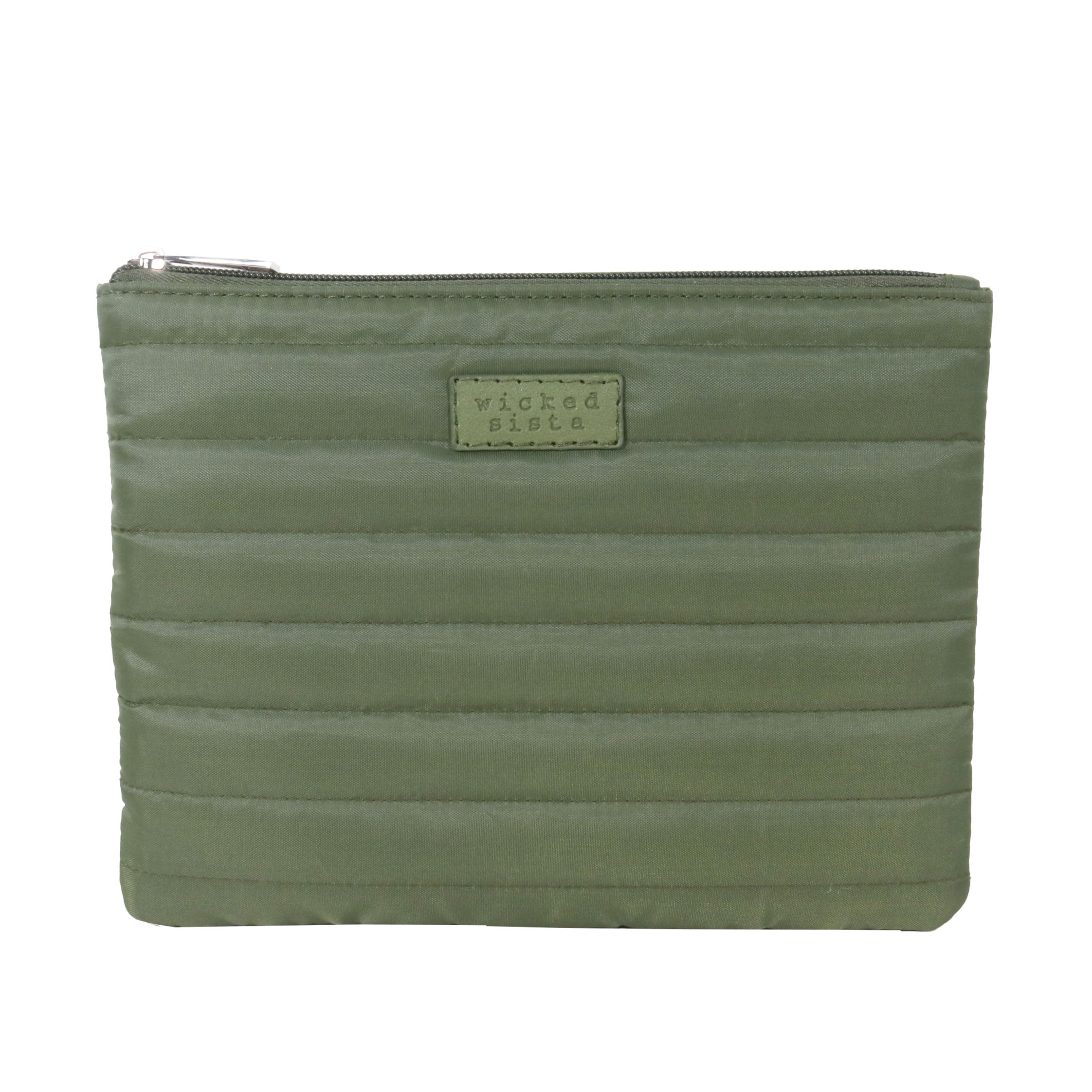 Wicked Sista Khaki Quilted Flat Cosmetic Bag
