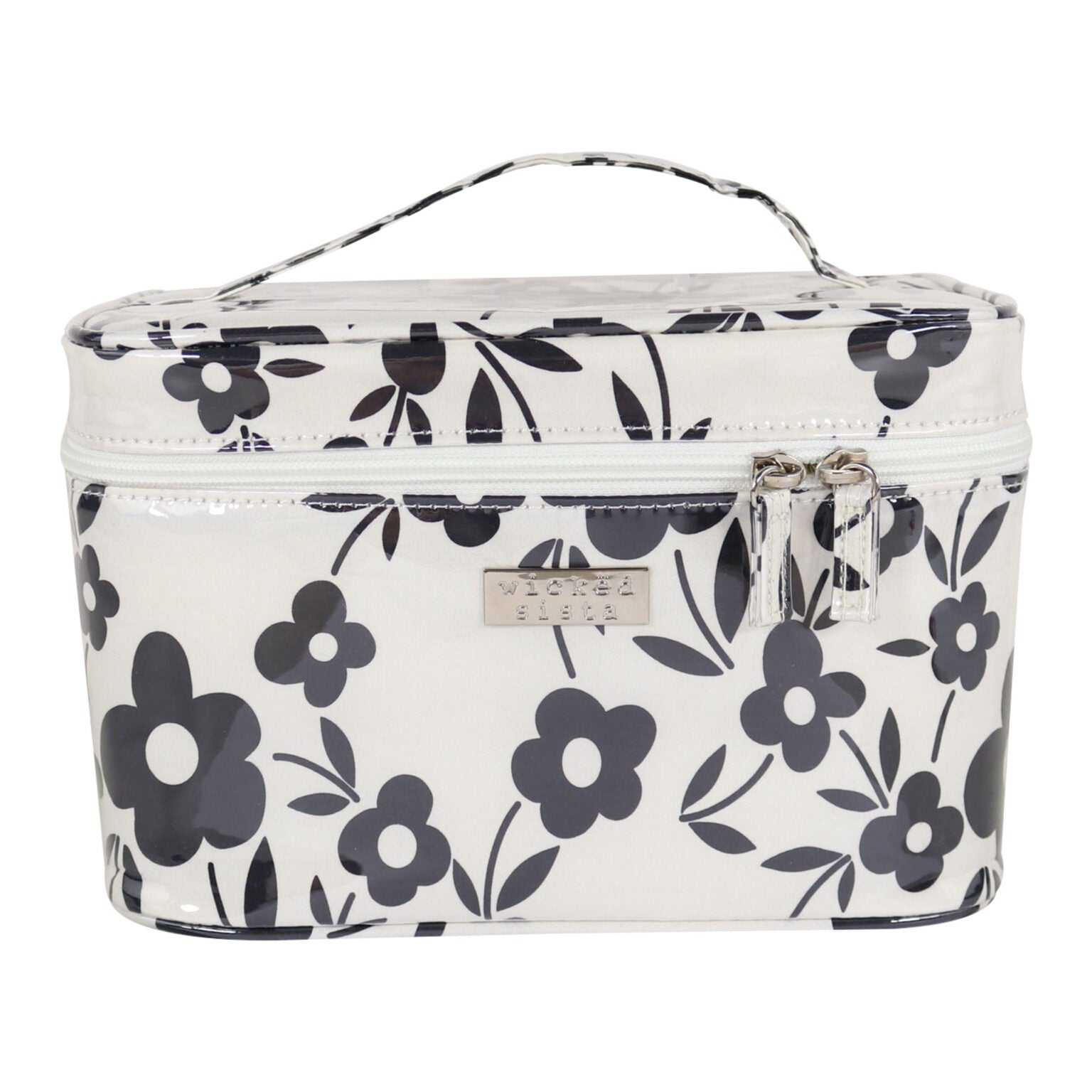 This compact beauty case is ideal for organizing makeup or personal care items. Its durable construction protects contents, while the monochrome floral design adds a...
