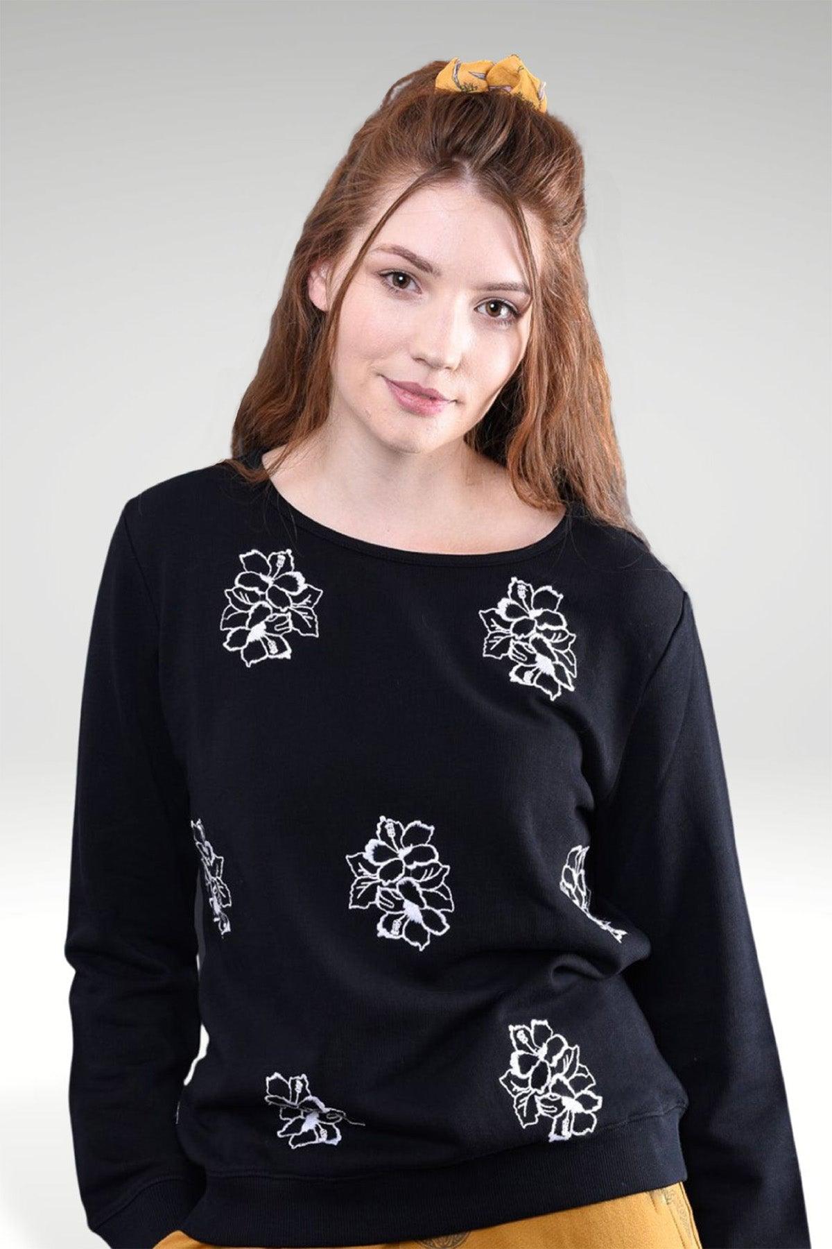 A cozy sweatshirt featuring a subtle floral touch. The soft interior provides warmth without feeling too heavy. Perfect for casual days and cool evenings.