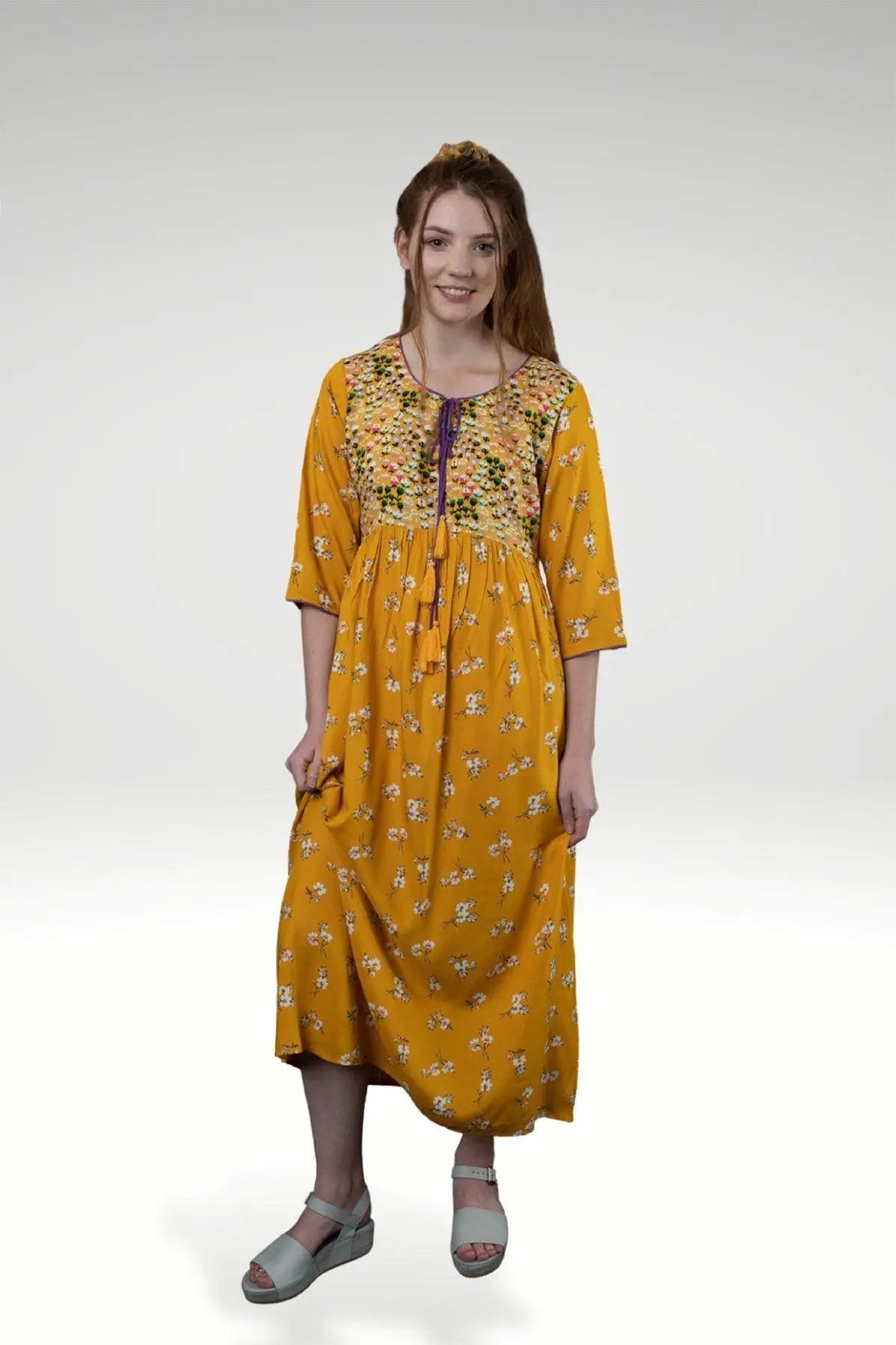 A delightful dress inspired by warm, sunny tones. Its comfortable structure ensures easy movement and all-day wear. Ideal for weekend outings or casual gatherings.Features Warm...